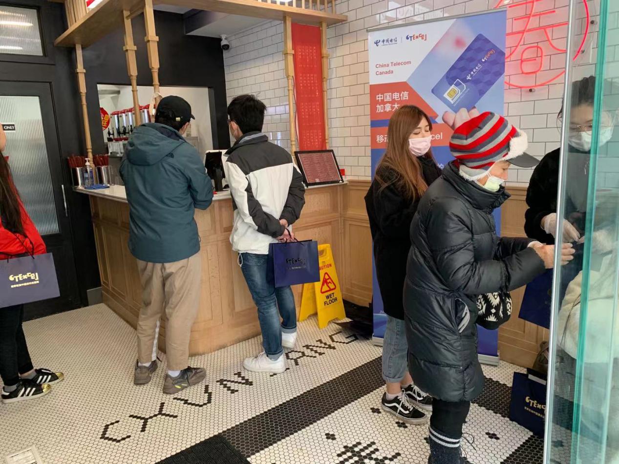[Canada] September 12, 2020, People lined up in front of China Telecom (Canada) Co., Vancouver store, the Burnaby branch, which is dramatically rare to see under the strike of the global pandemic. It drew quite a lot attentions by the crowd.